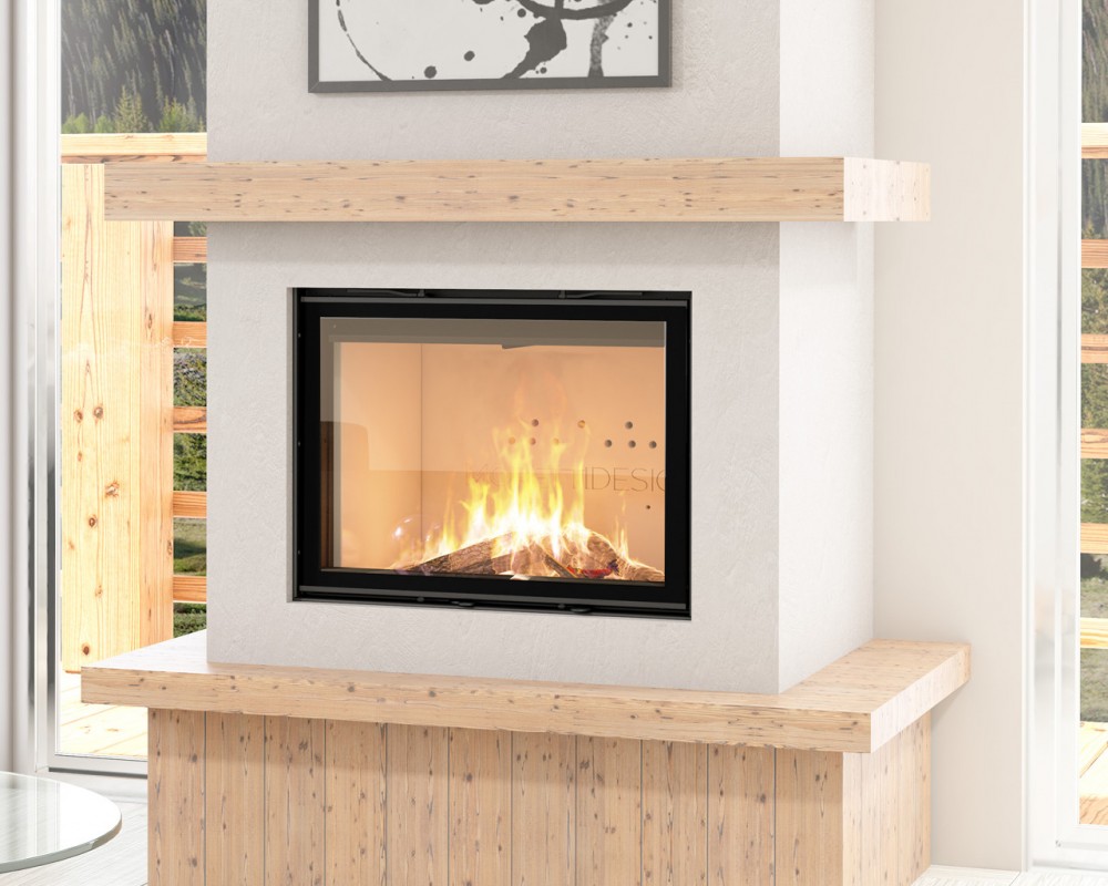 Zračni kamin na drva s kotnimi vrati majhnih dimenzij. Zračni kamin s sprednjim steklom 60 cm, ki povečajo plamen, beli šamot pa osvetli zgorevalno komoro. Enostavnost uporabe zagotavljajo DVOJNO ODPIRANJE dvižnih vrat za nalaganje drvi in stranska vrata za lažje čiščenje. DVOJNO ZGOREVANJE poveča učinkovitost in PREHOD ZGOREVALNEGA ZRAKA dlje časa ohranja čisto prednje steklo. Kot dodatno opremo lahko dobite komplet za kanaliziranje toplega zraka za razširitev funkcionalnosti ogrevanja z izjemno zmogljivim kanalskim motorjem s 700 m³/h do štiri sobe.