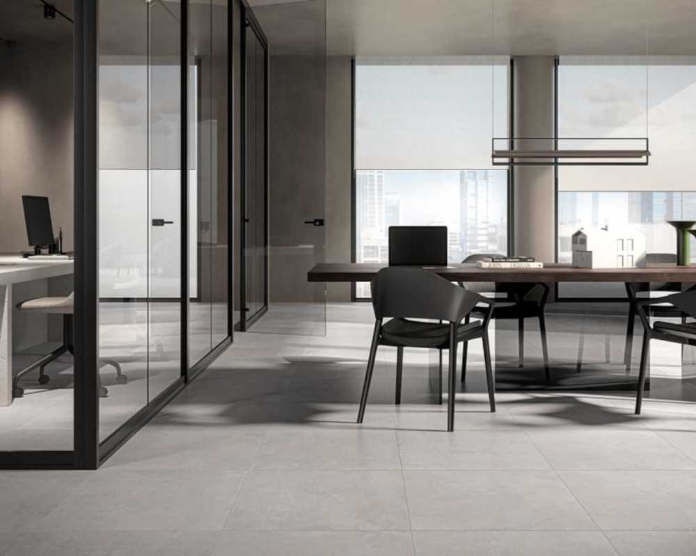 Ploščica iz porcelanastega gresa z efektom betona, ki s svojo univerzalnostjo omogoča preproste in estetske rešitve.