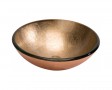 Steklen umivalnik oblečen v bakrene lističe velikosti 42x42x14,5 cm.